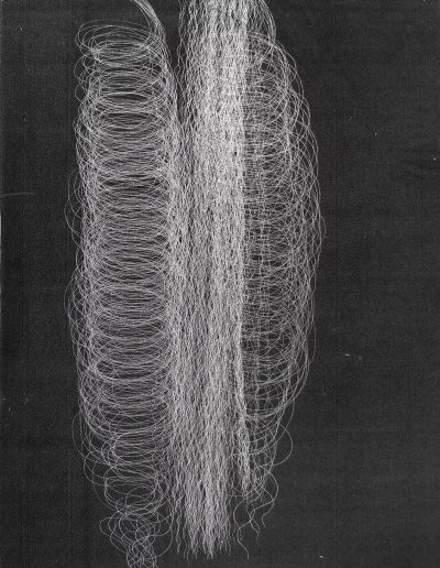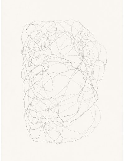 The selection of drawings focuses on blind drawings. These are – with eyes closed – drawn through carbon paper with a metal tip. Another group is based on a comb drawing (through carbon paper). These were overdrawn with rows of dots (fineliner).